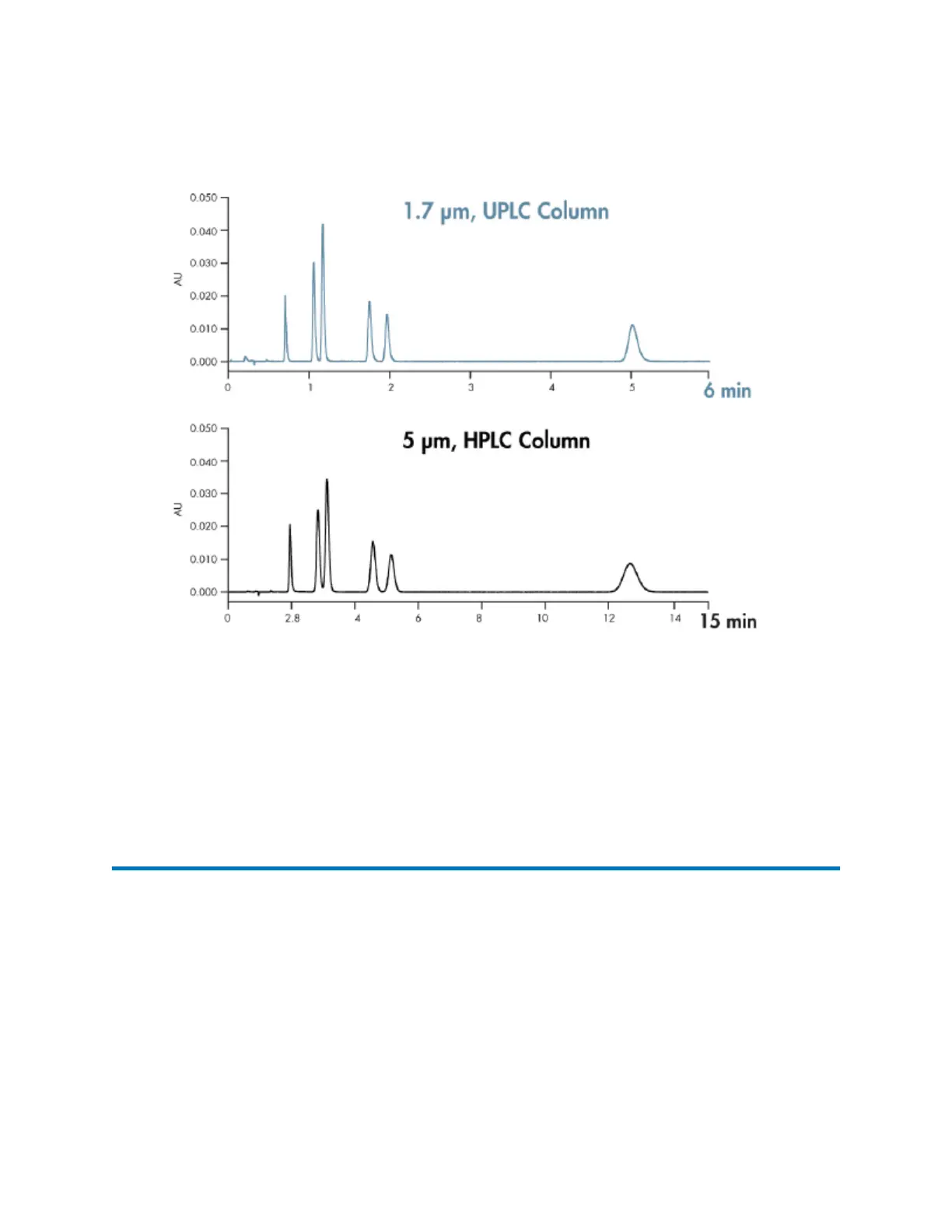Figure 1–2: Comparison of chromatographic separations using 5.0-µm and 1.7-µm