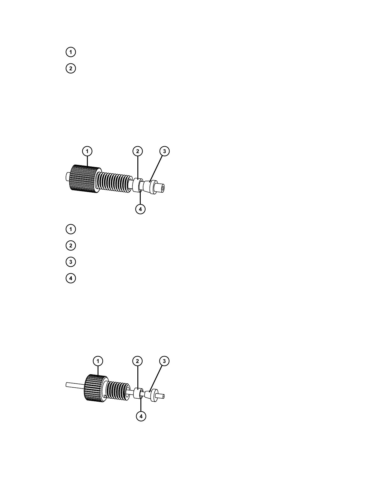 2.5.1.4 Long 1/4-28 fitting with flangeless ferrule and stainless steel lock ring installed on