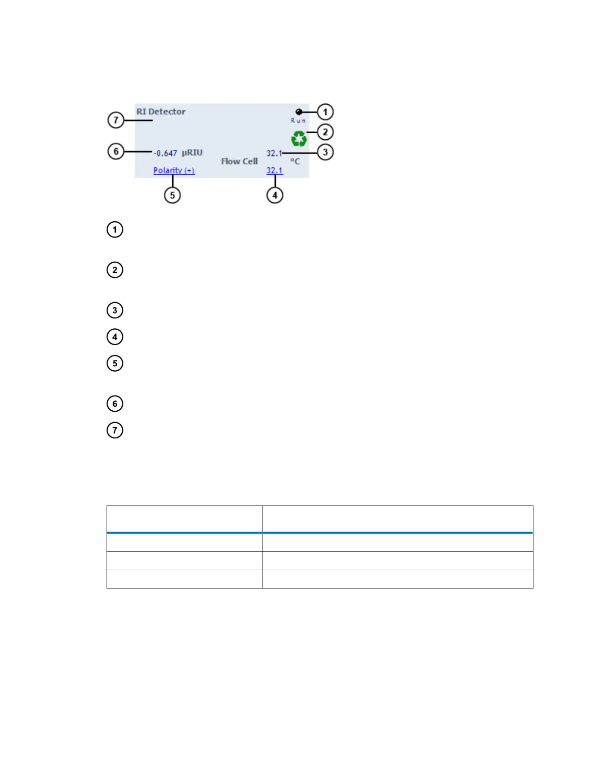 Table 3–10: Additional functions in the RI detector control panel