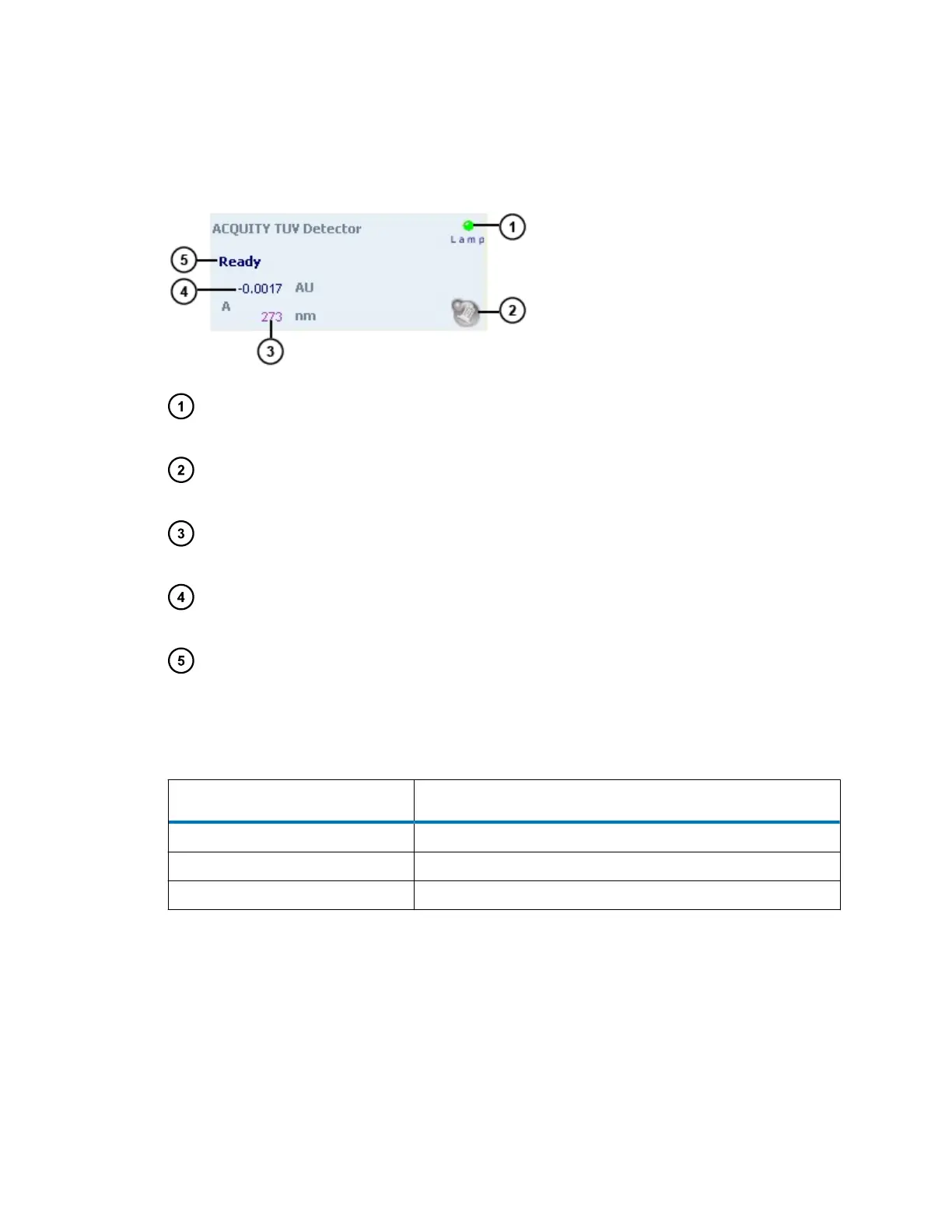 Table 3–11: Additional functions in the TUV detector control panel