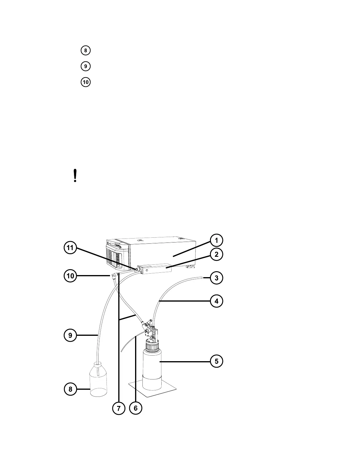 the entire PTFE waste line, from the instrument to the exhaust-trap bottle, follows a