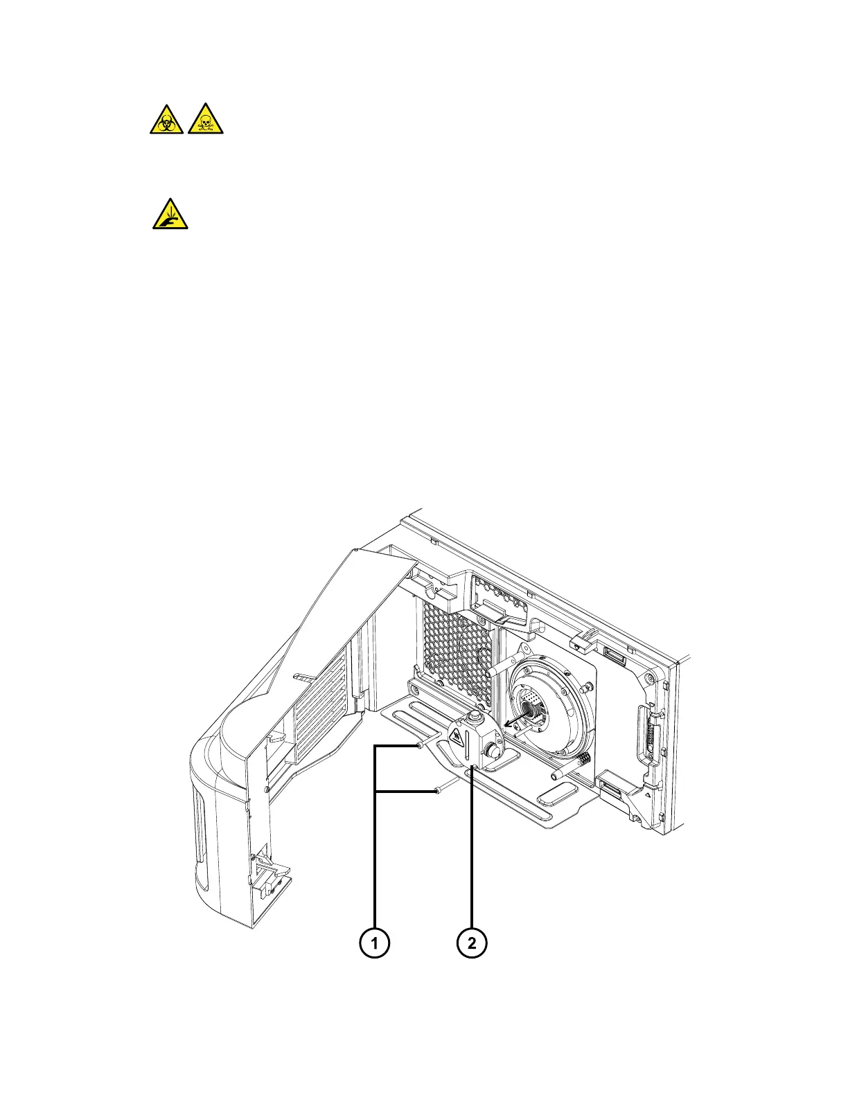 3. Remove the 2 screws securing the ion block to the instrument using the 2.5-mm hex
