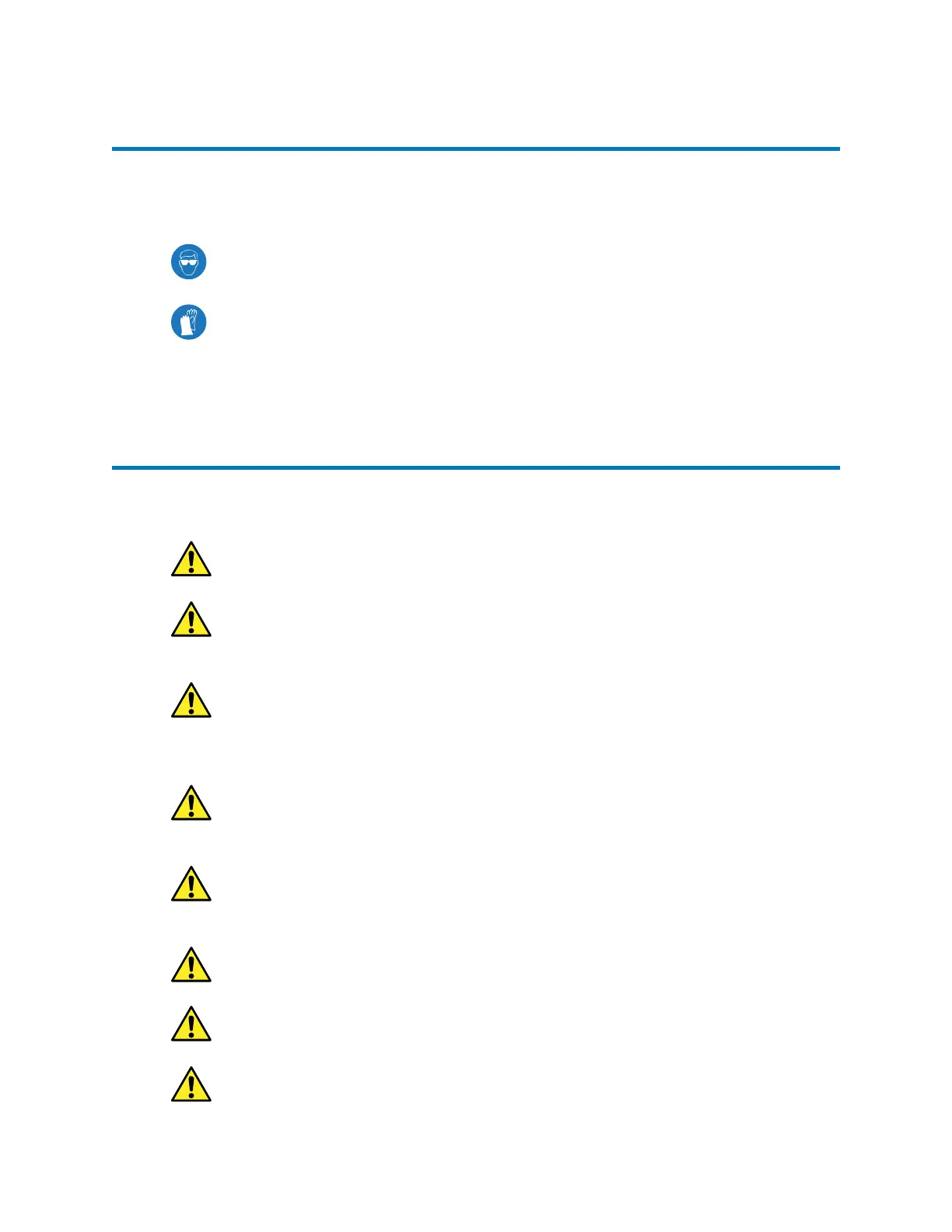 The Use Eye Protection and Wear Protective Gloves symbols alert you to the requirement for