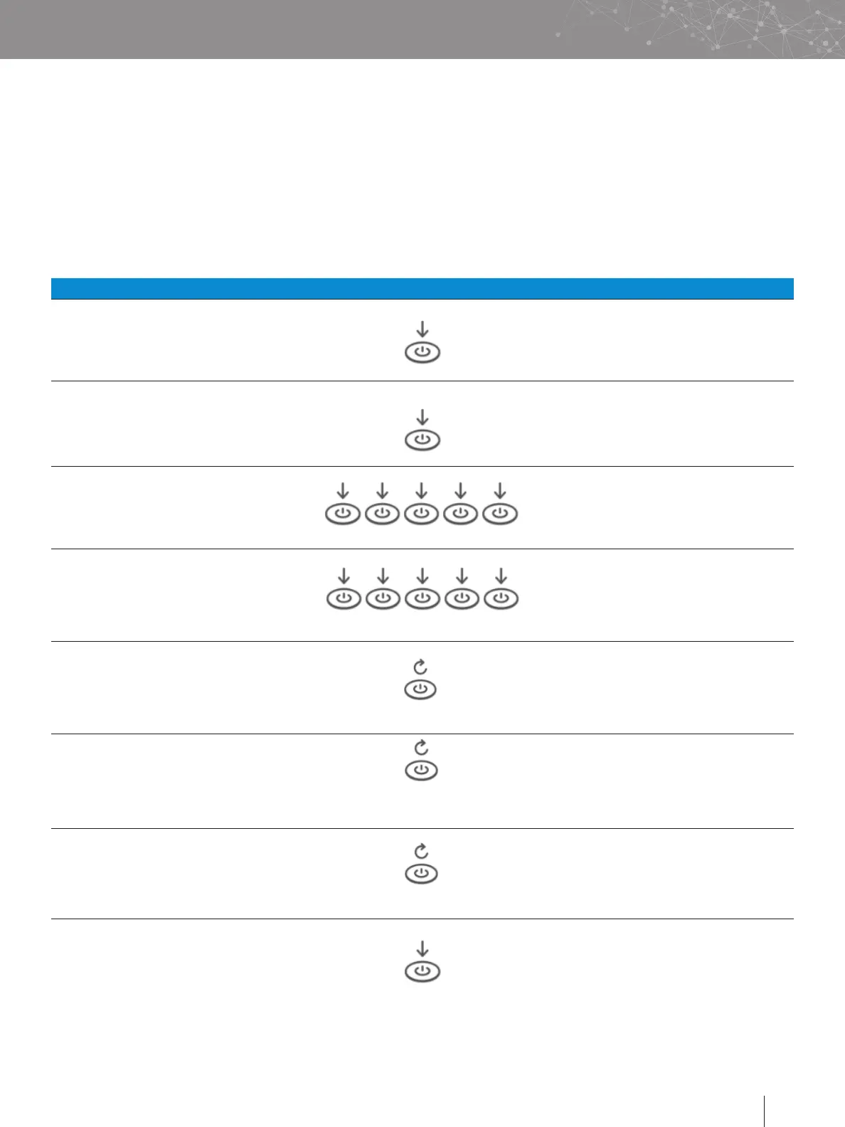 according to the duration of pressure applied to the button, the status of the Andrew+ Robot can be changed. The table below