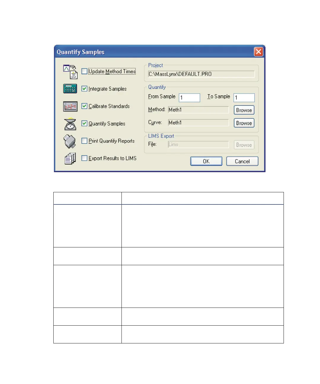 Quantify Samples dialog box