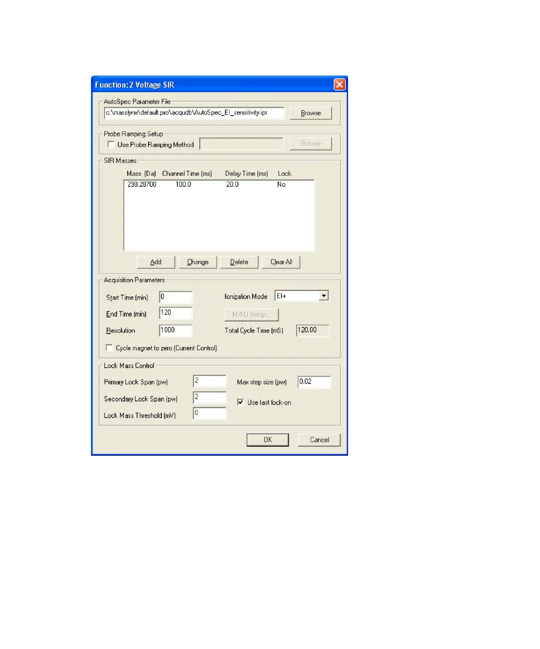 2. In the Sample List MS File column, select AutoSpec_EI_sensitivity.exp.