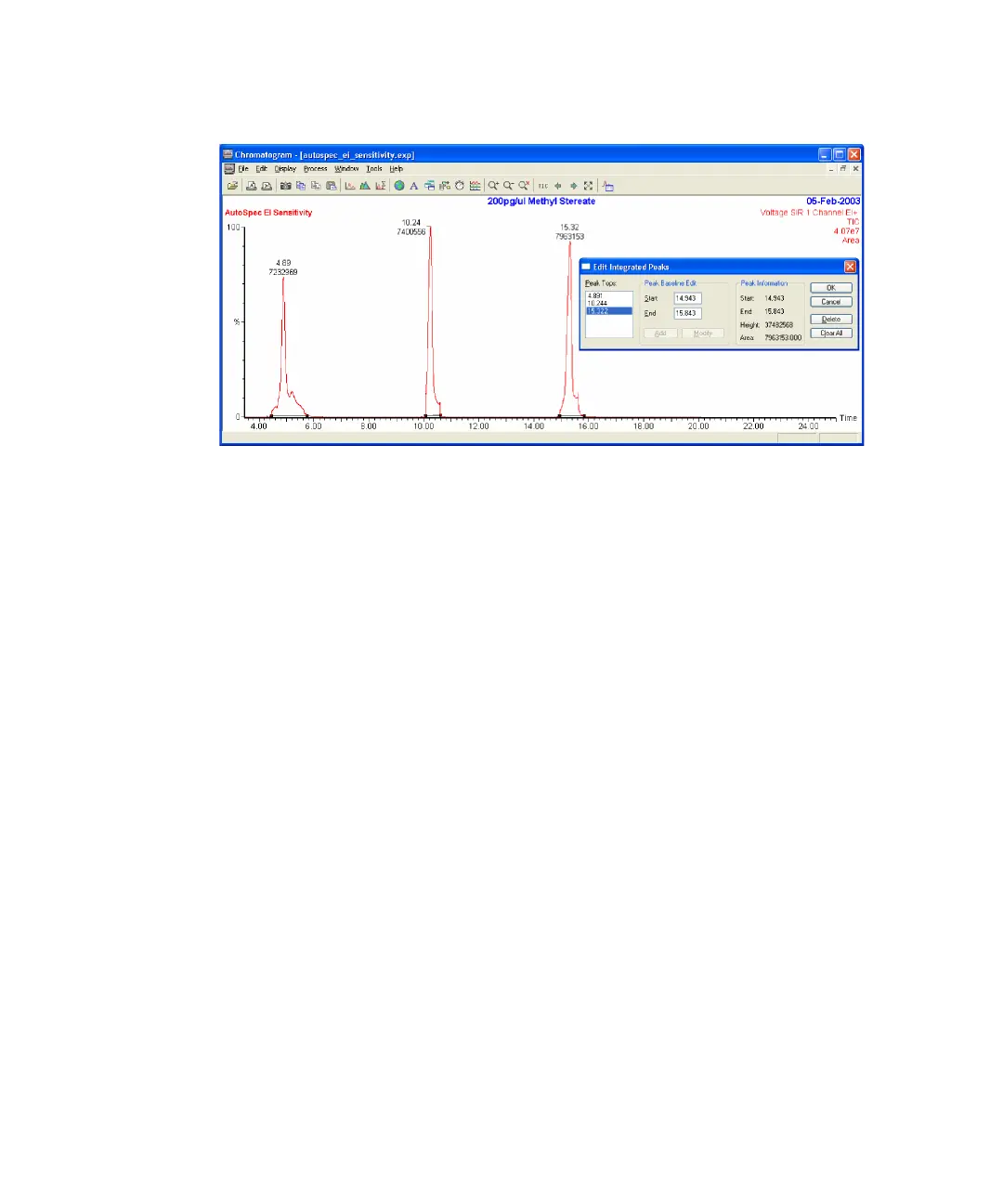 Chromatogram with peak areas displayed