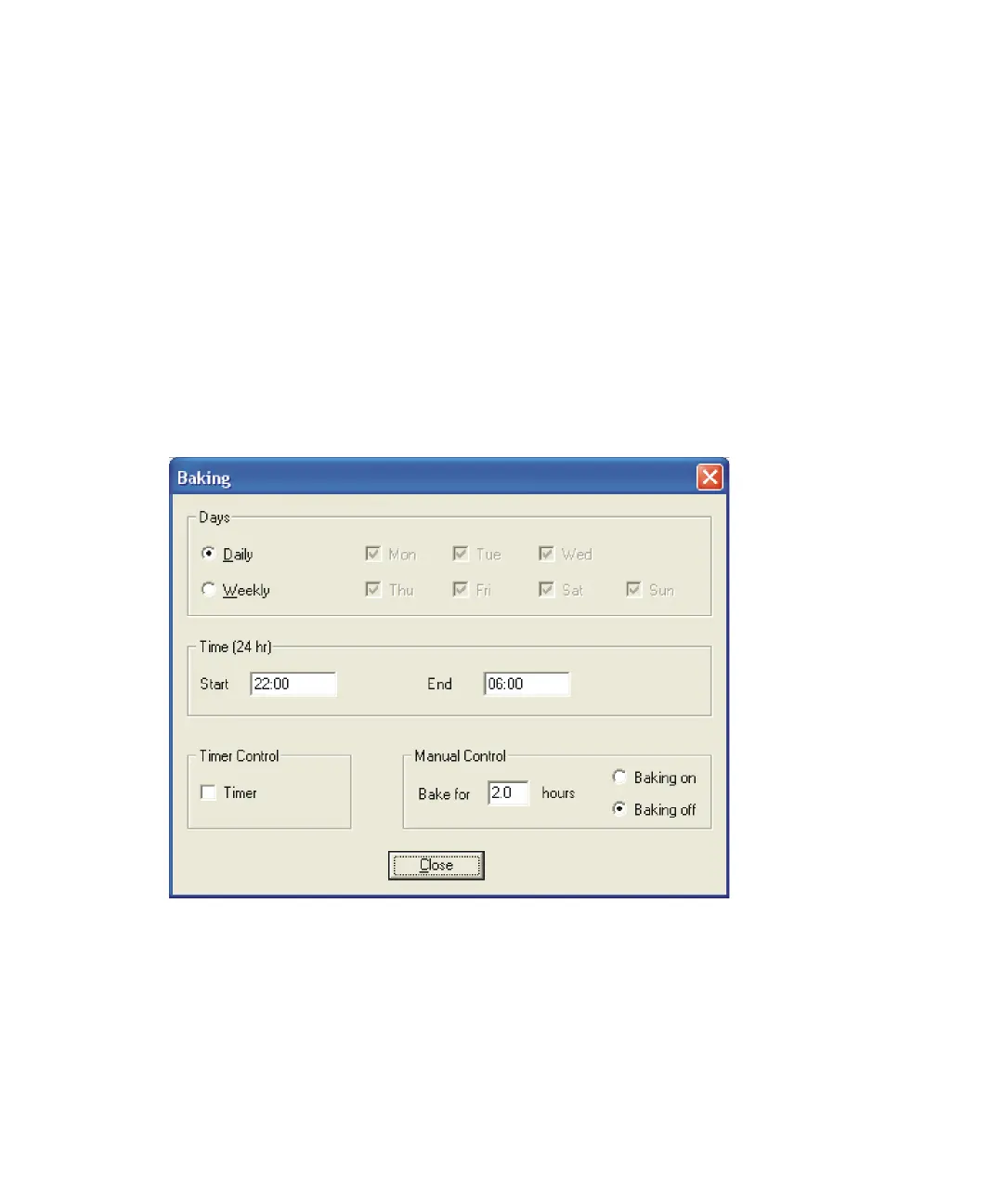 Baking dialog box