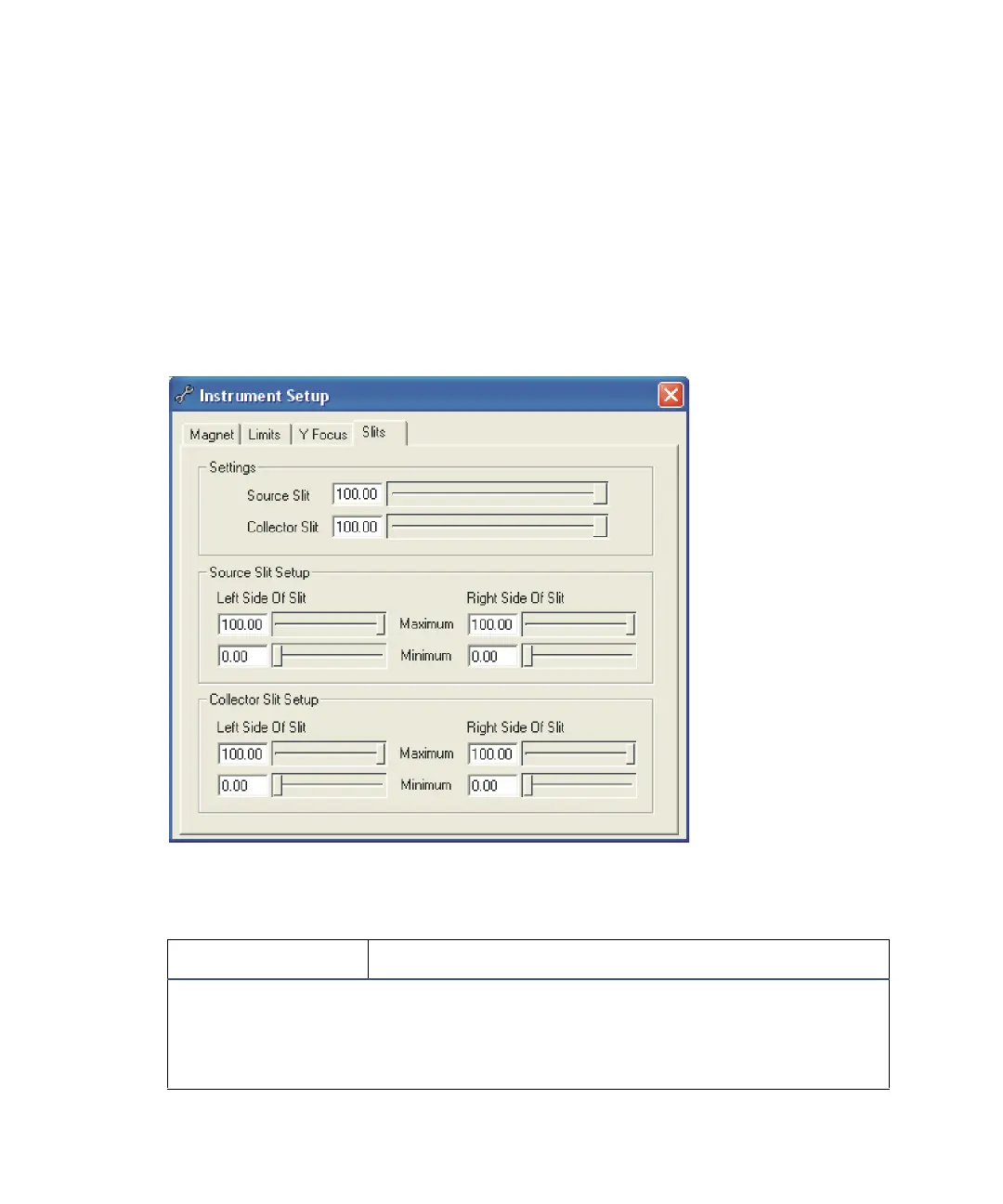 Use the Slits tab to set up the instrument’s source and collector slits.