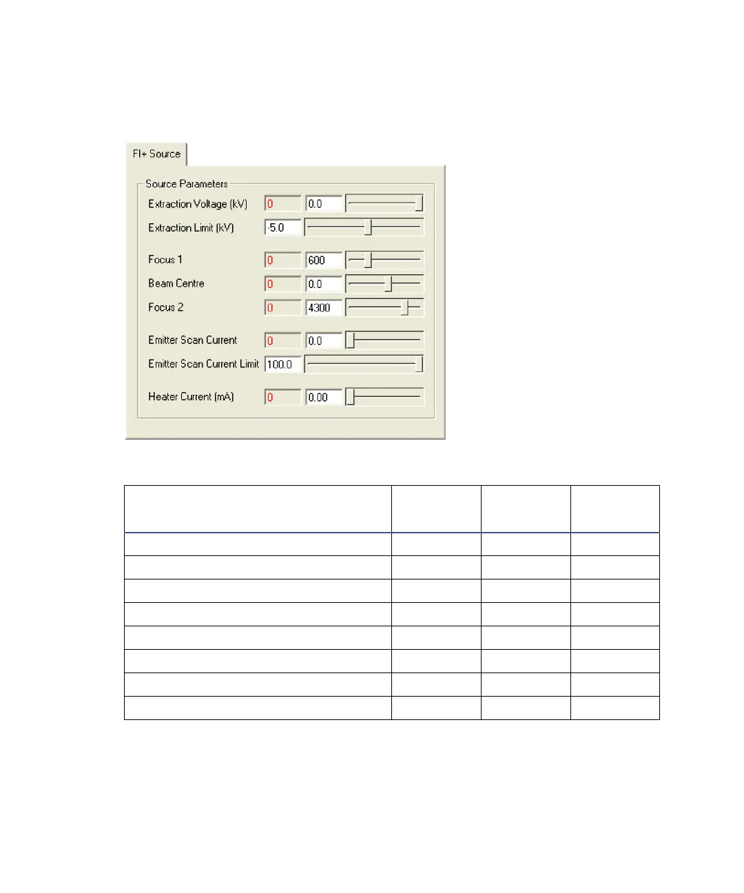 The FI Source tab parameters