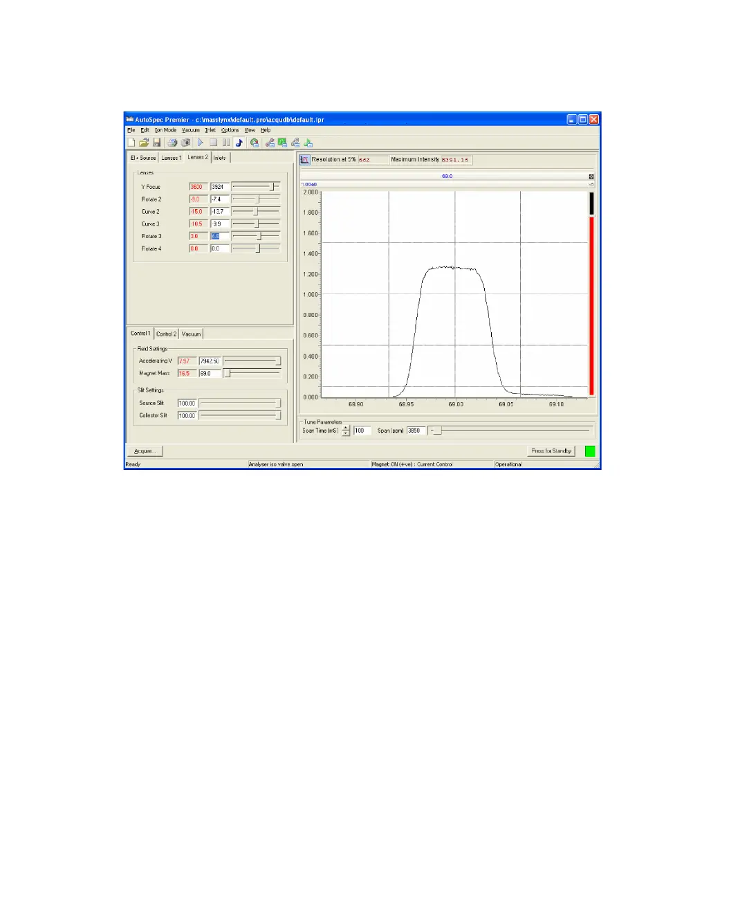 6. Set the collector slit to optimize the ion beam width and shape.