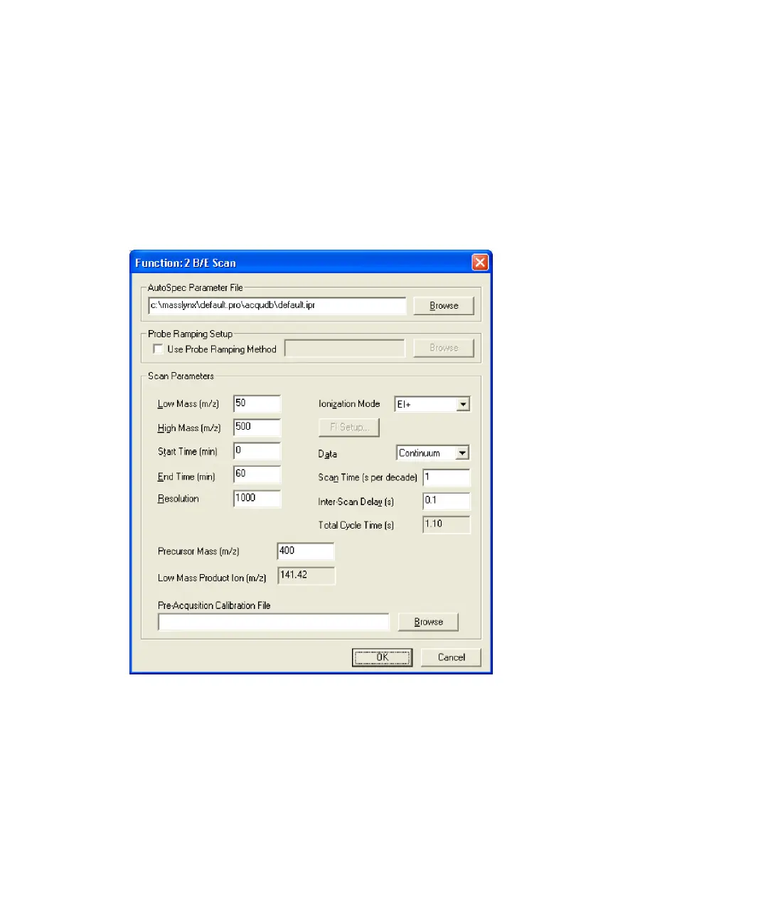 Use the B/E Scan function editor is used to set up scans in which the magnet’s