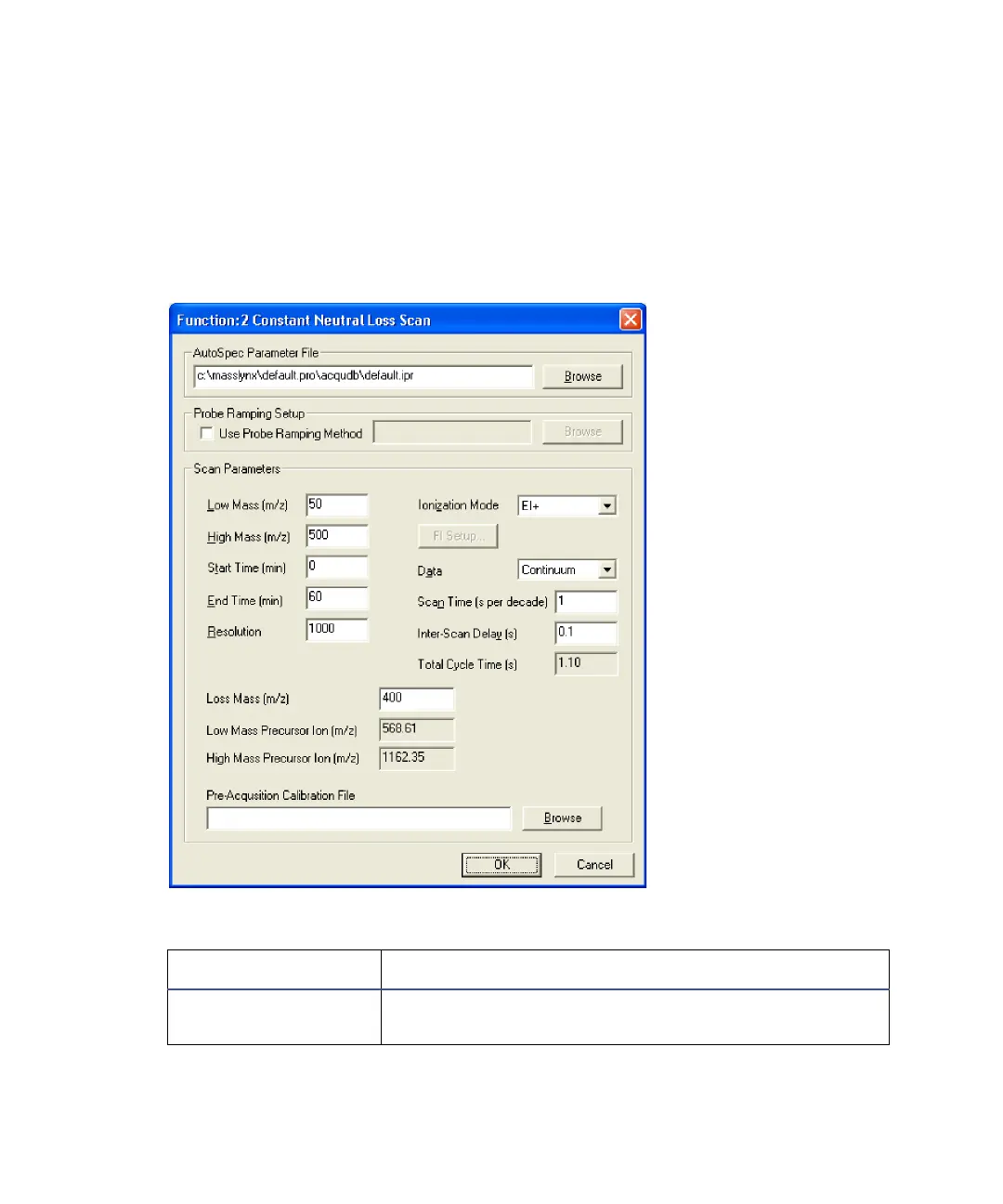 Constant Neutral Loss Scan function editor parameter