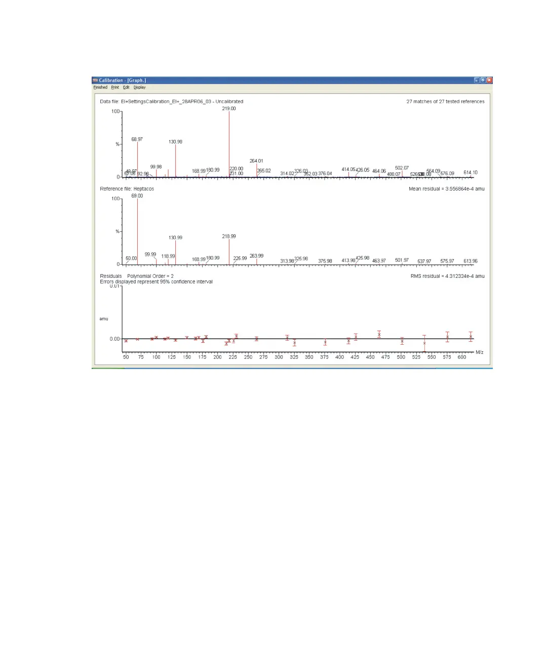 peaks are at the correct expected mass. The residuals graph shows