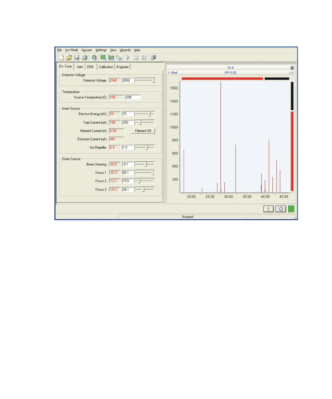 Tune window showing low mass peaks: