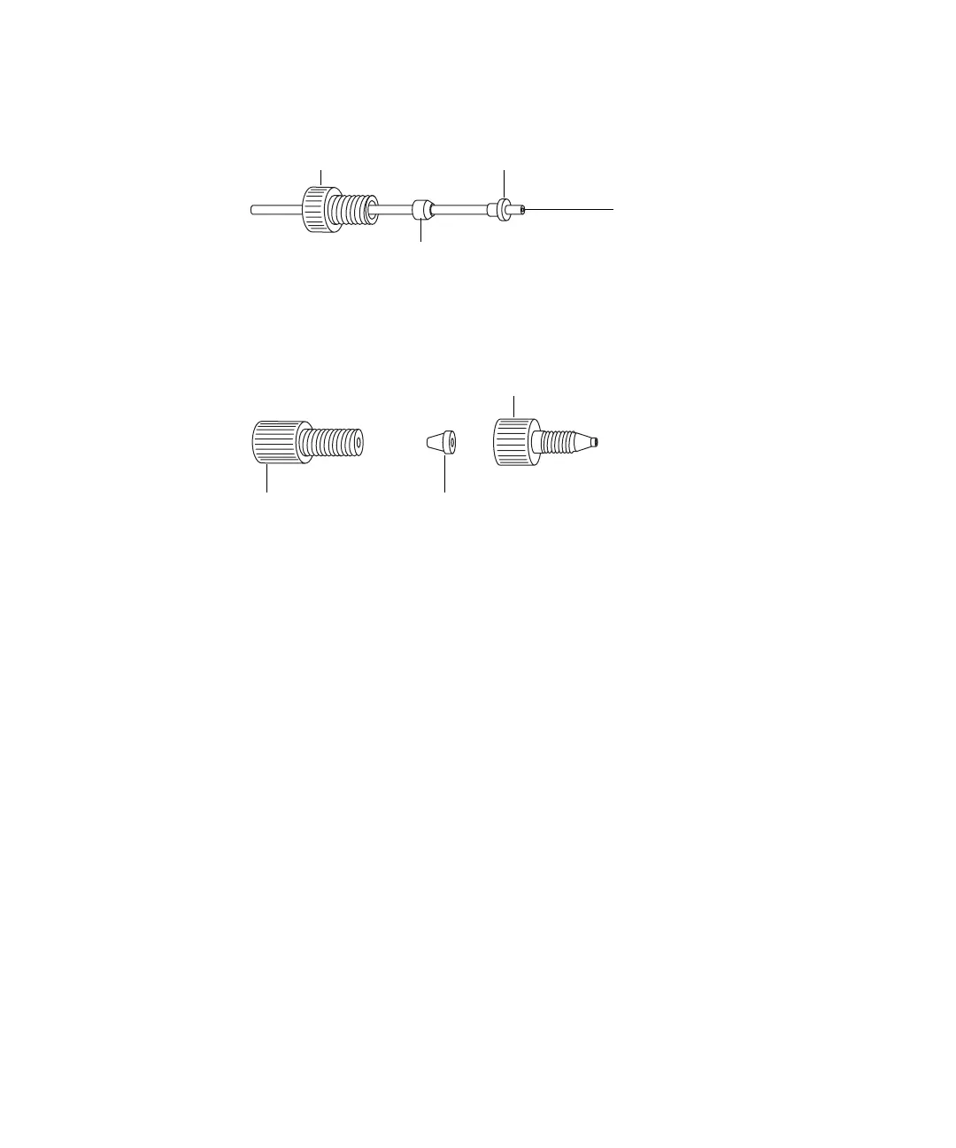 d. Slide the transparent, 1/16-inch flangeless nut and blue, 1/16-inch