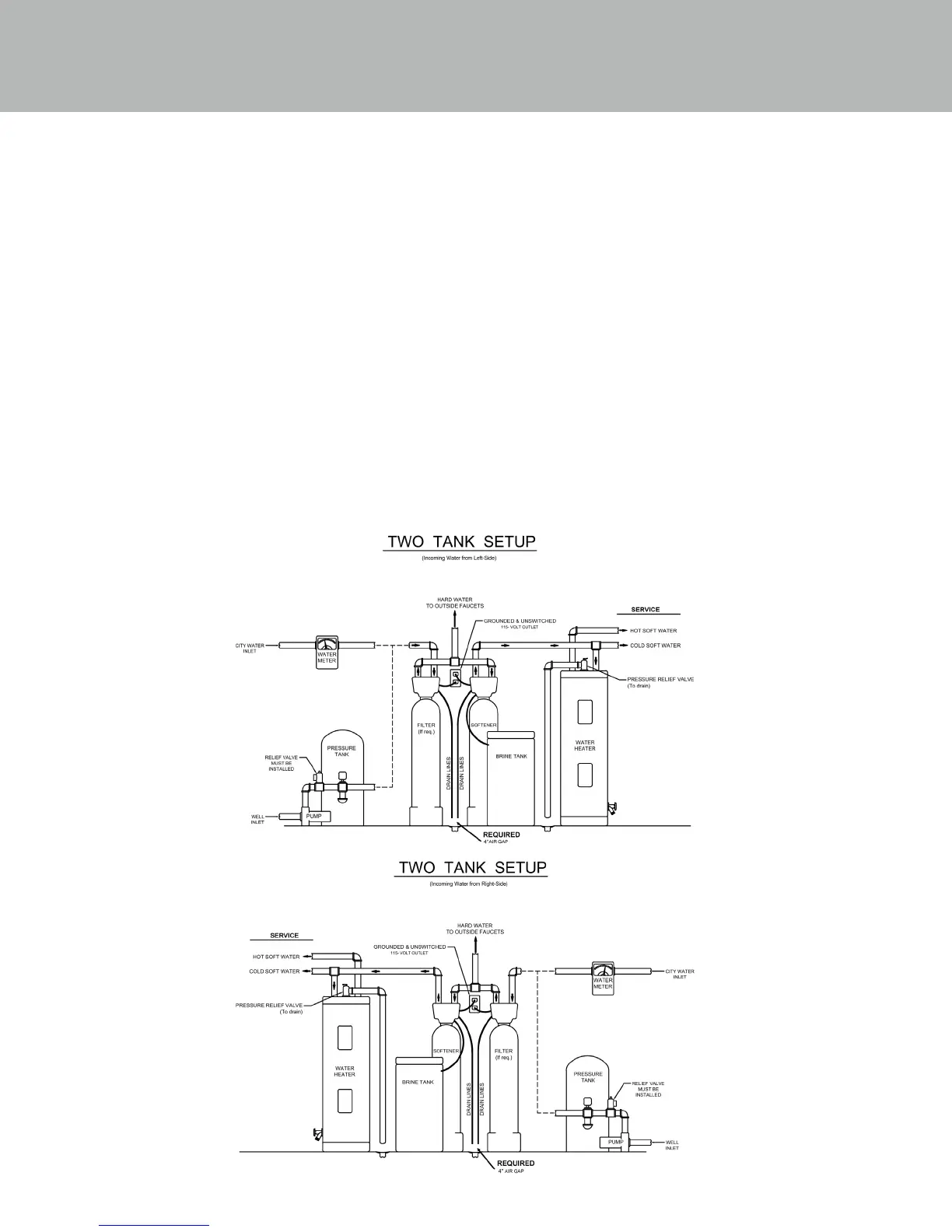 Note: All plumbing lines not requiring “soft” water should be connected “upstream” of the softener, if installed.