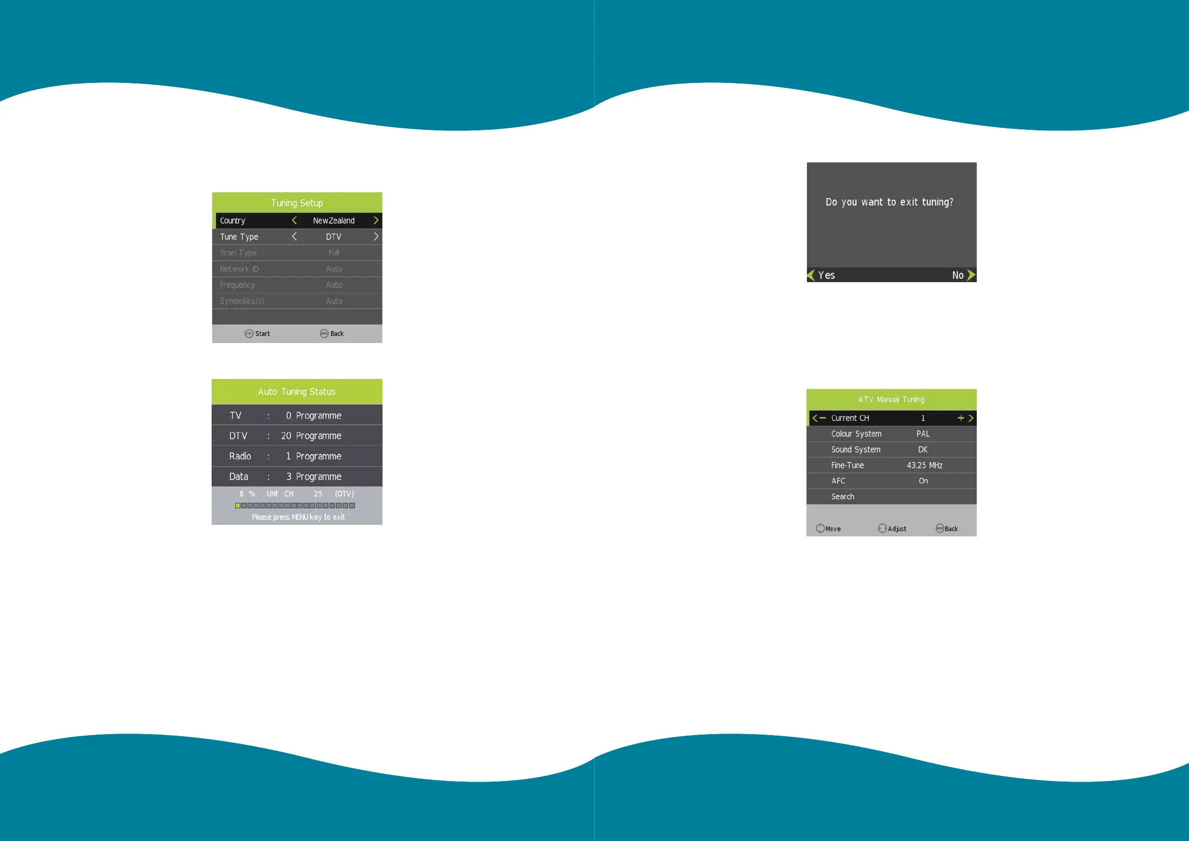 Press [LEFT]/[RIGHT] to adjust channels, when there is signal, press OK then begin ATV searching.