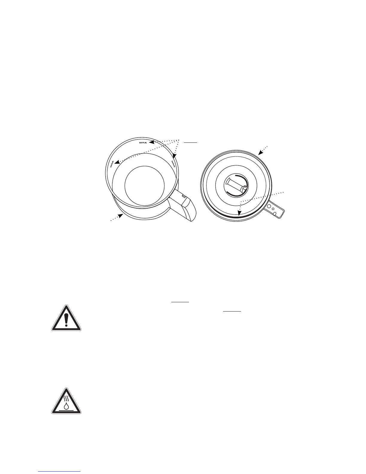 2. Rinse and fi ll kettle to “MAX” lines with approximately 1 gallon of