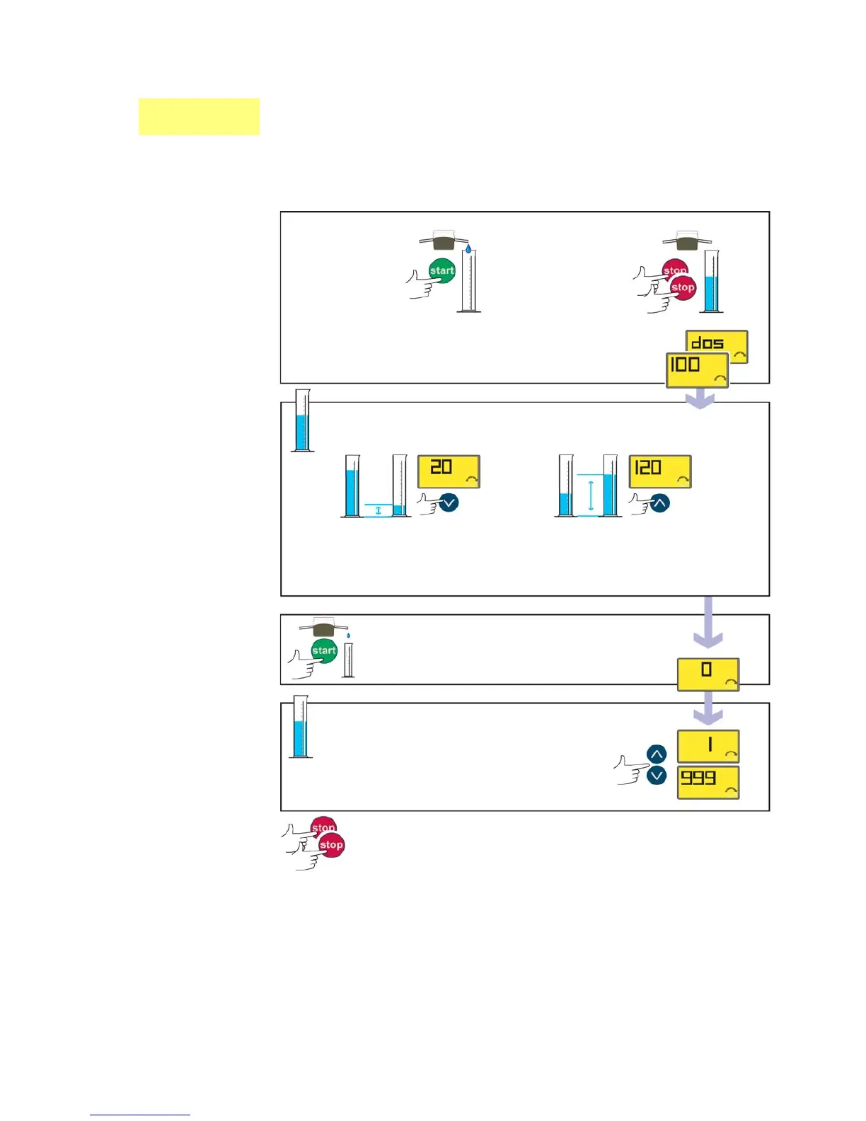 The pump can dispense a set quantity or dose of fluid each time the key is pressed.