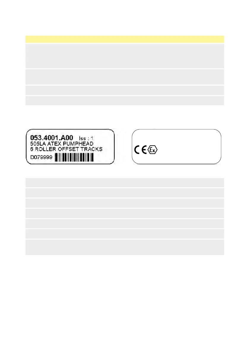505LAポンプヘッドには以下のラベルが付いています。