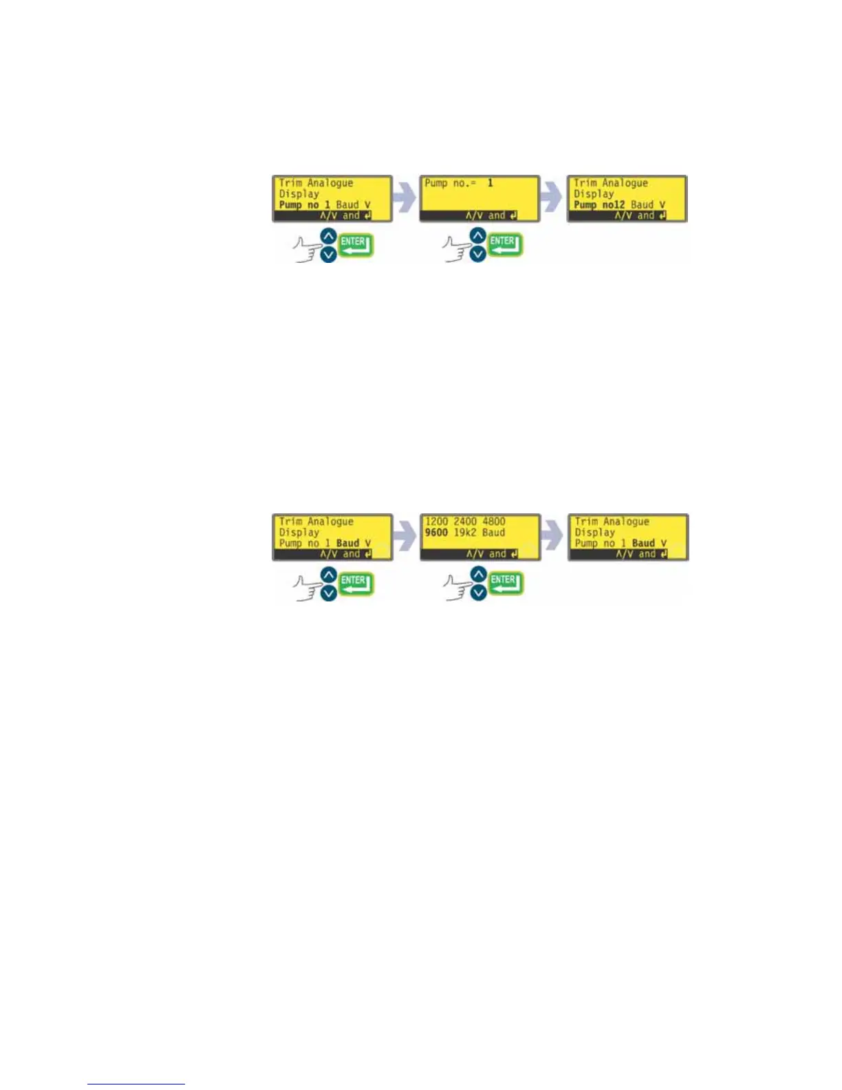 The pump displays a screen allowing you to change the pump’s baud rate. Use