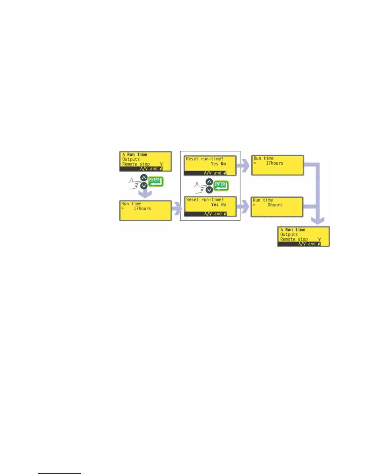 Note: Run time is displayed on the Combined display. See 18.3 Display. Run time