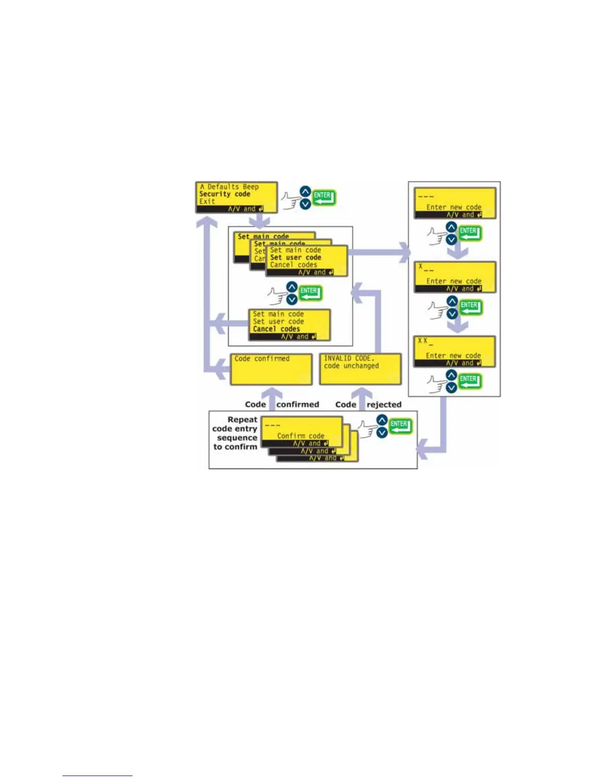 If a main code has been set, a screen is displayed inviting the user to set a