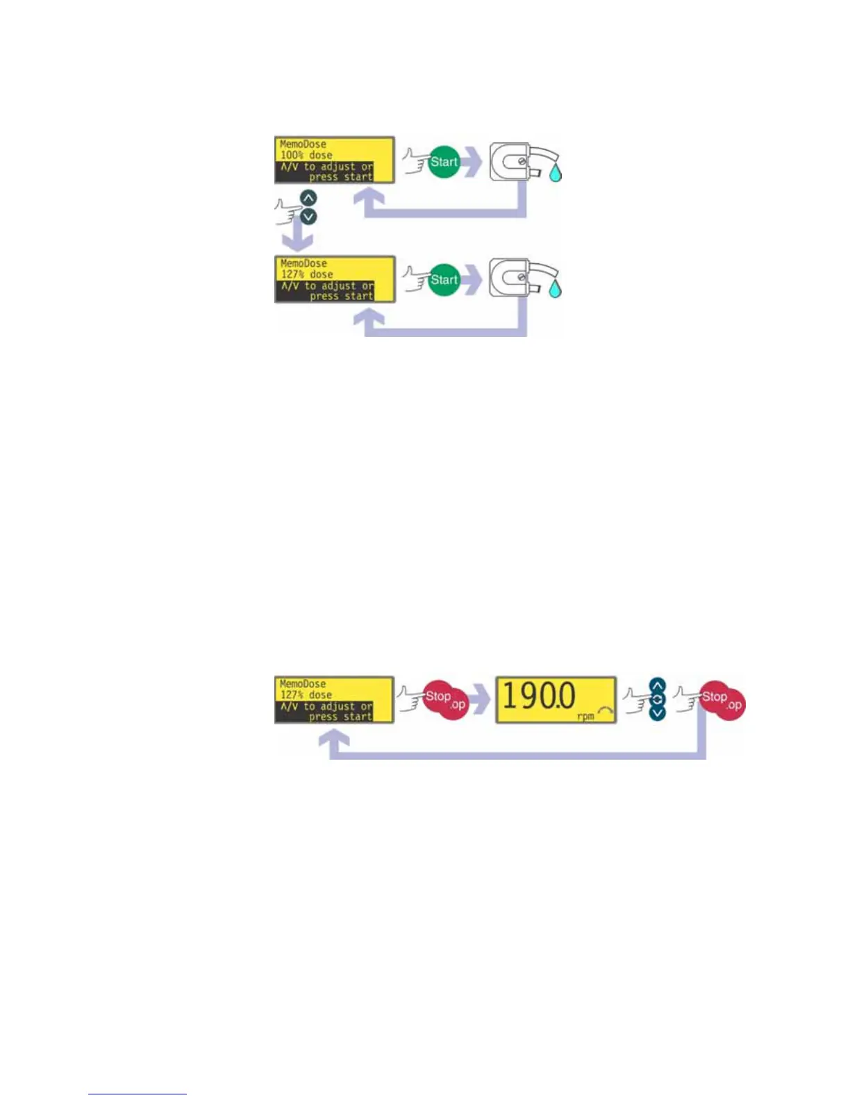 returning to MemoDose, the pump dispenses the previous dose size at the new speed.