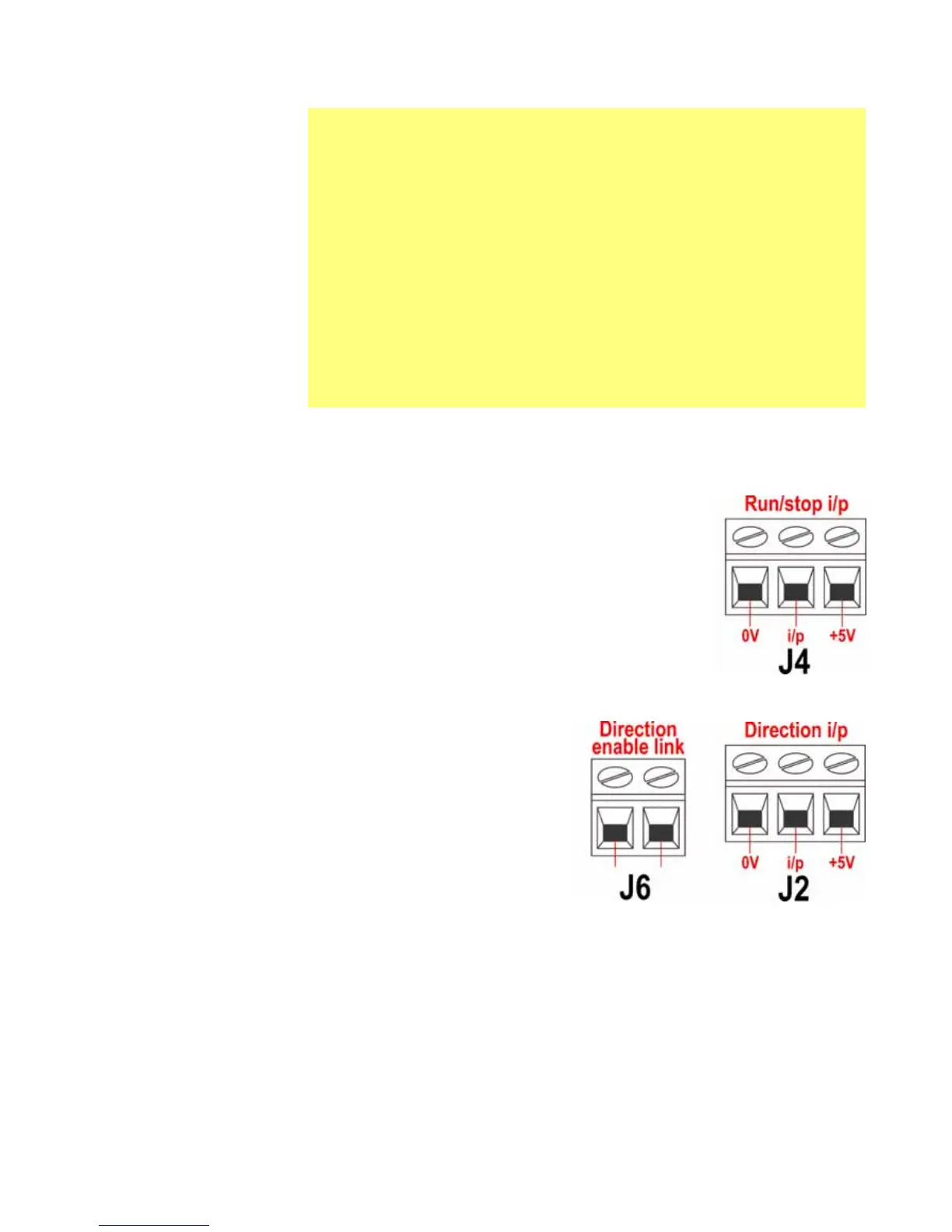 applied to the i/p terminal and the 0V terminal of the Direction i/p connector (J2).