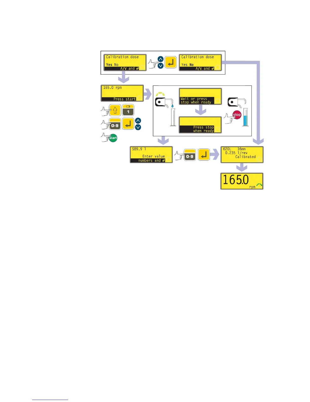 The pump offers to run a calibration dose. Use the UP and DOWN keys to