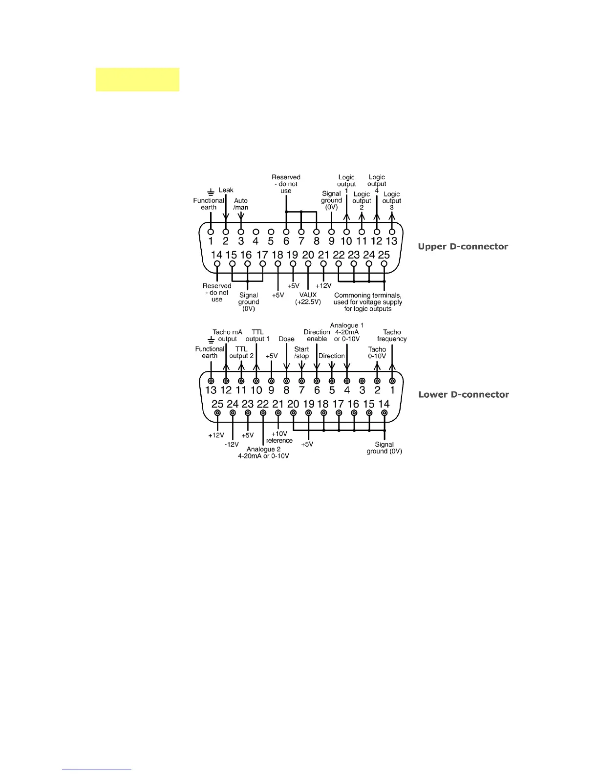 rear of the pump. There are two 25-way D-connectors. The top one is male, the