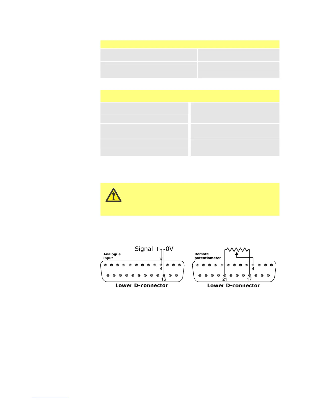 signal within the range 4-20mA; or a remote potentiometer.