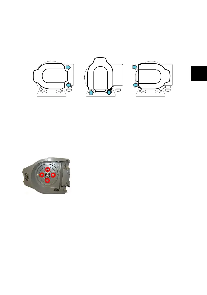 l Fissare il corpo all’azionamento utilizzando le quattro viti di fissaggio fornite in dotazione utilizzando