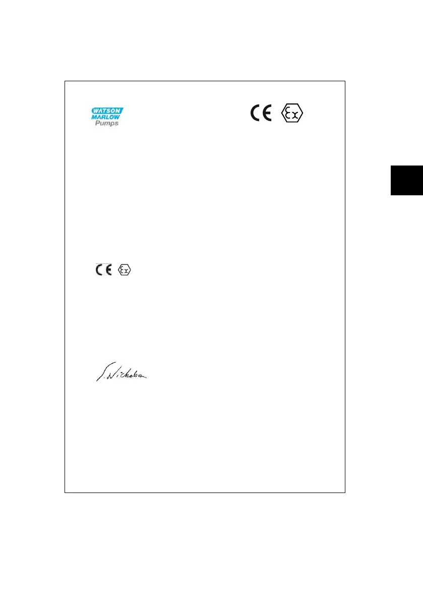 This declaration applies to the pump when using the Watson-Marlow tubing stated within the pumphead manual and in