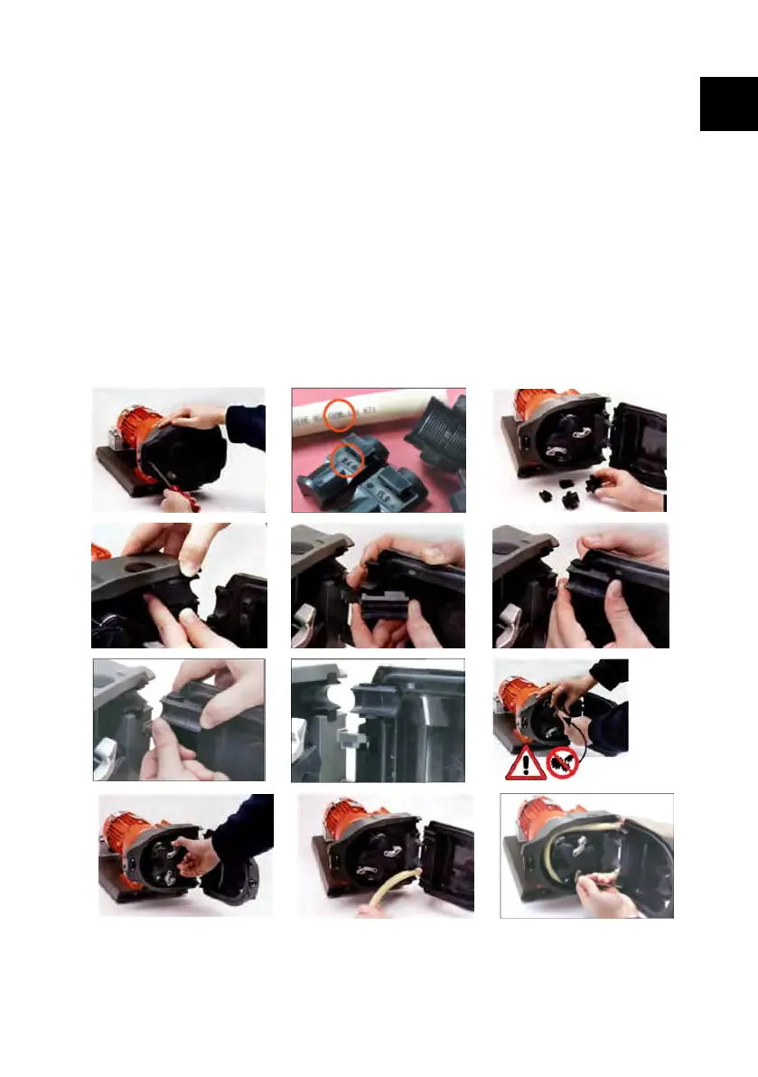 l Locate one end of the tubing into the lower port “U” clamp and hold in position. Wrap the tubing