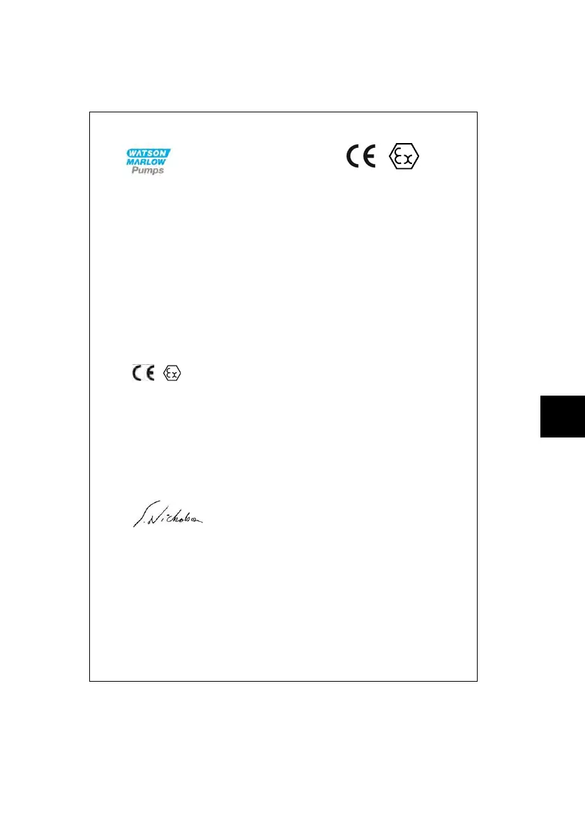 This declaration applies to the pump when using the Watson-Marlow tubing stated within the pumphead manual and in