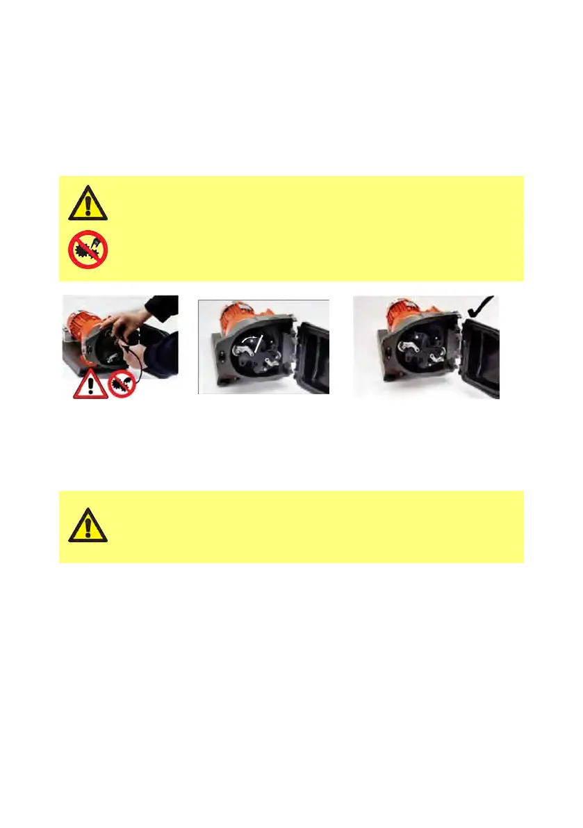 l Fermez le capot de protection et poussez-le contre le stator jusqu’à enclenchement du verrou.