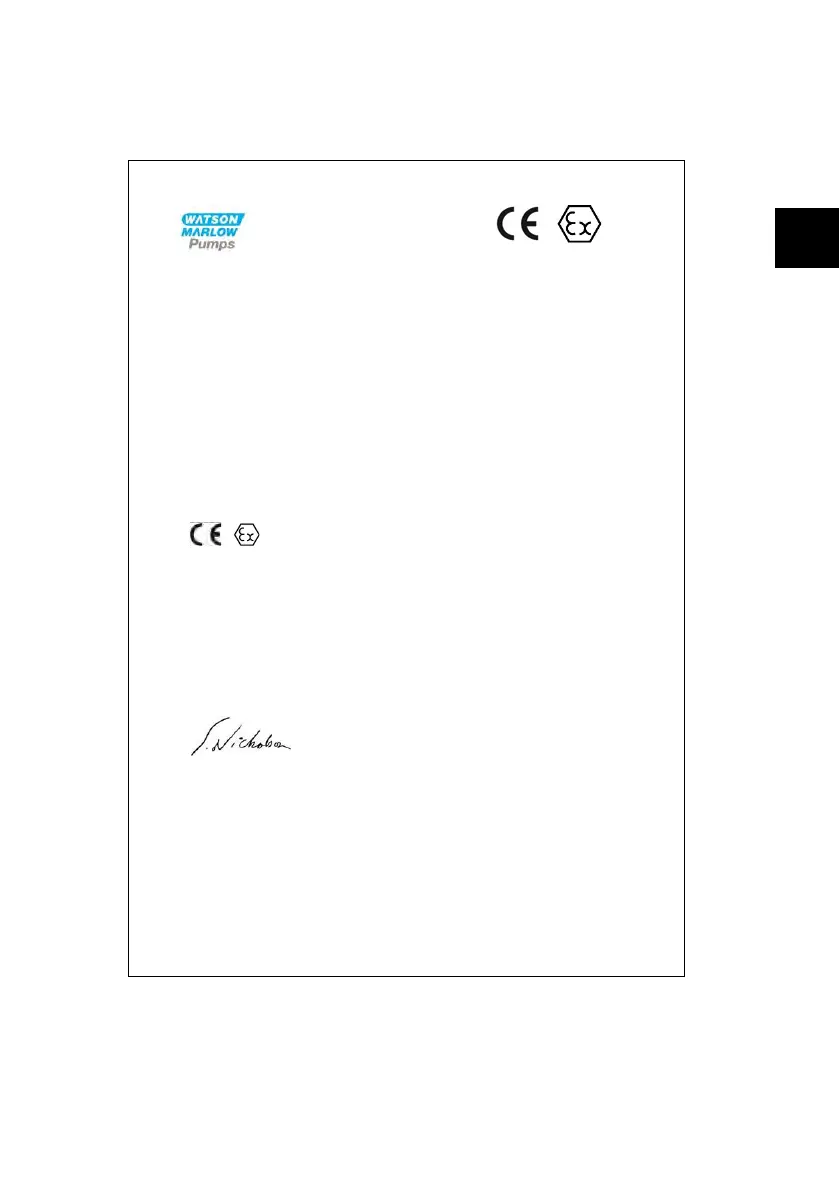 This declaration applies to the pump when using the Watson-Marlow tubing stated within the pumphead manual and in