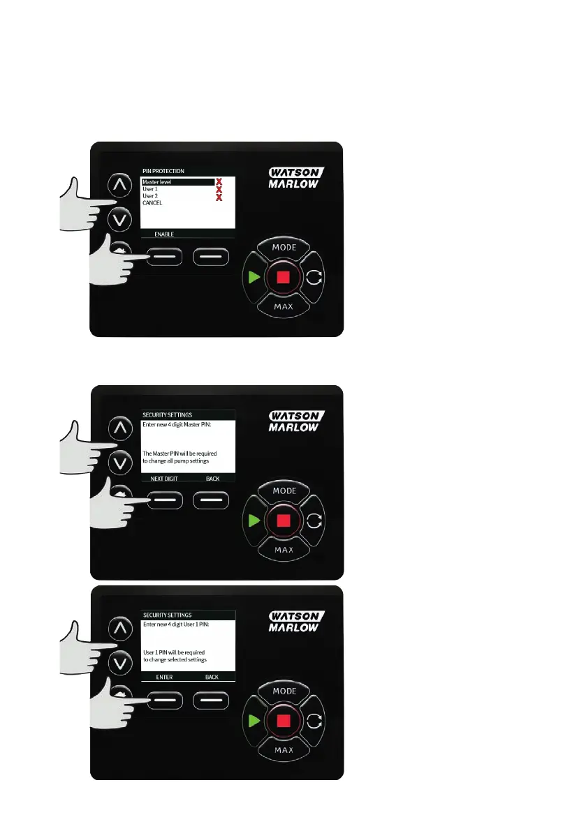 To define a four digit Master PIN, use the ∧ /∨ keys to select each digit from 0-9. Once you have the
