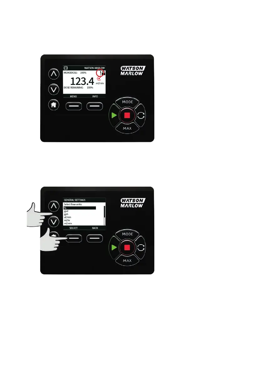 Use the ∧ /∨ keys to move the selection bar over the required flow unit, then press SELECT. All flow rates