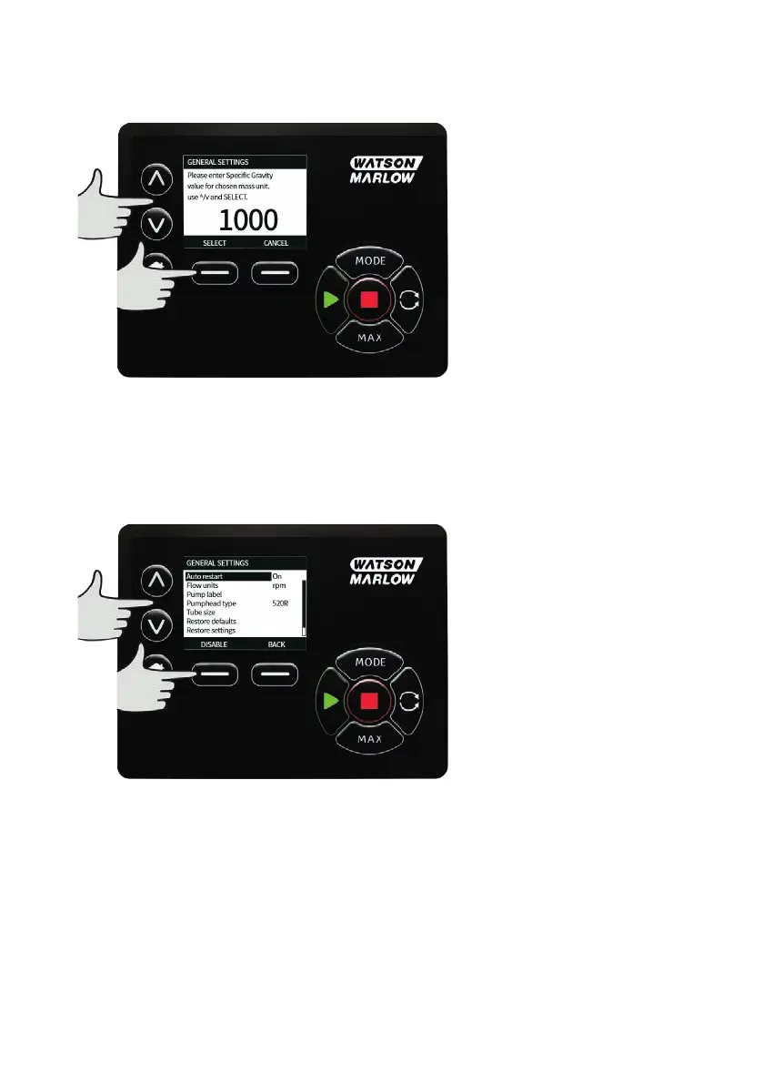 Use the ∧ /∨ keys to enter the value of the specific gravity, and press SELECT.