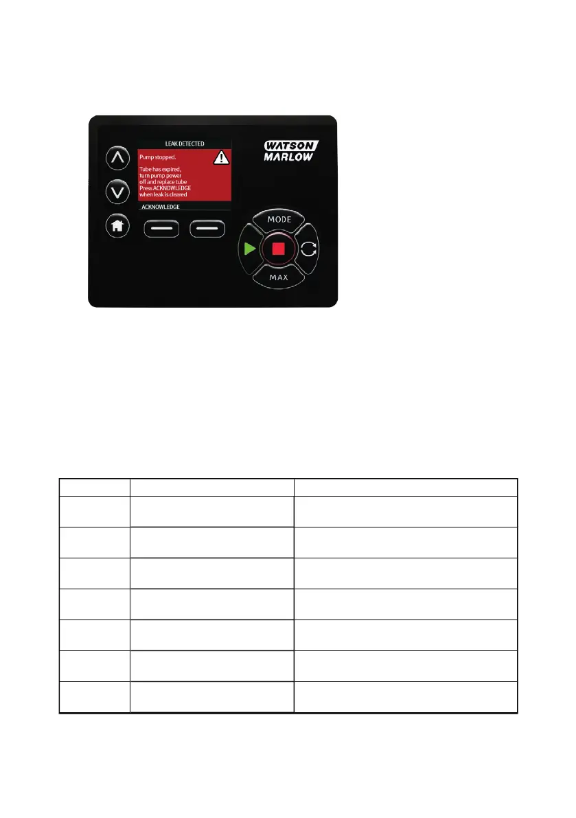 If a Watson-Marlow leak detector has been fitted to the pumphead, and a leak is detected; the pump will