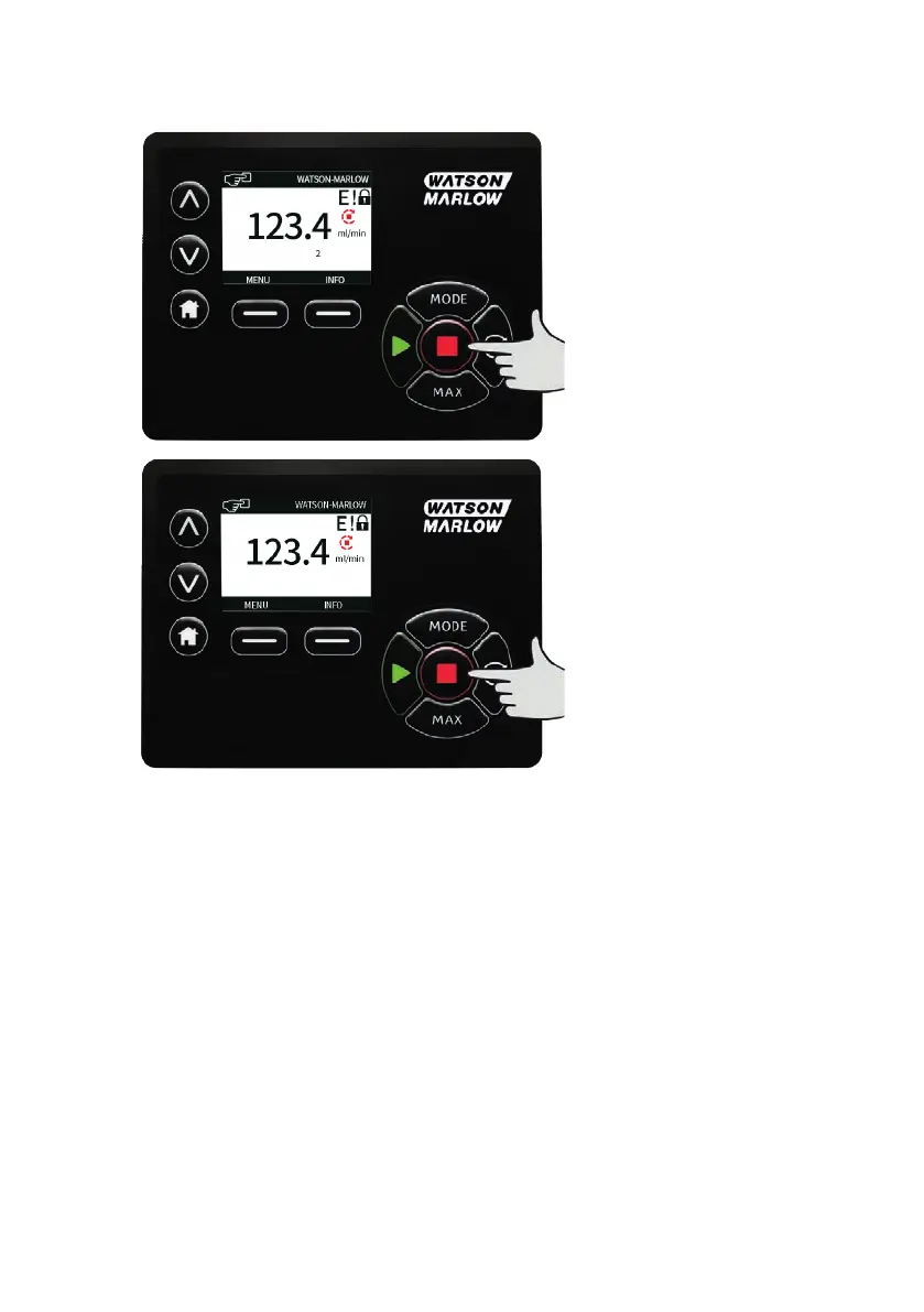 Stops the pump. The display background changes to white. If the pump is not running pressing this has