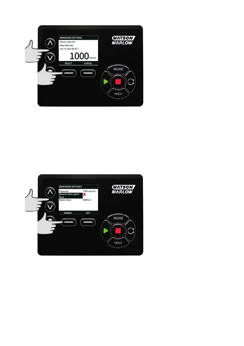 From the MemoDose settings screen, use the ∧ /∨ keys to scroll to Resume Interrupted Dose and