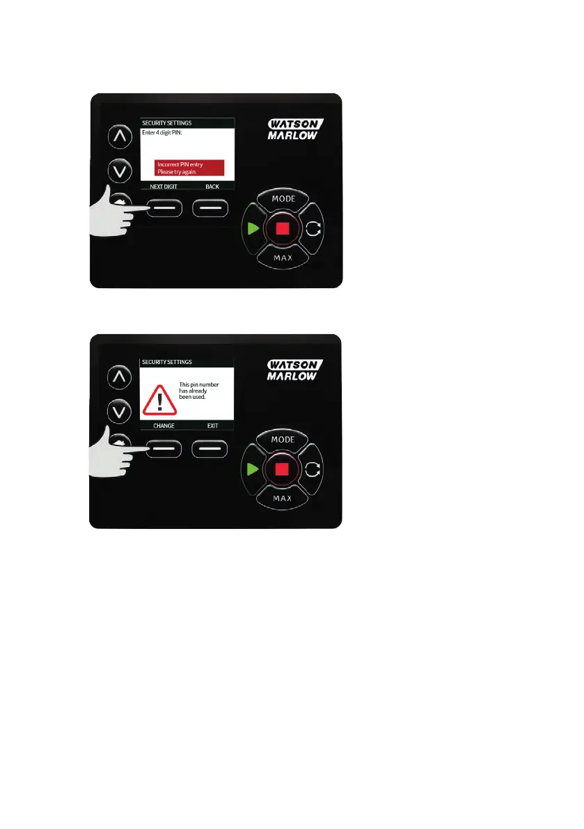 If a PIN number is entered that is already in use, the following screen will be displayed, press CHANGE to