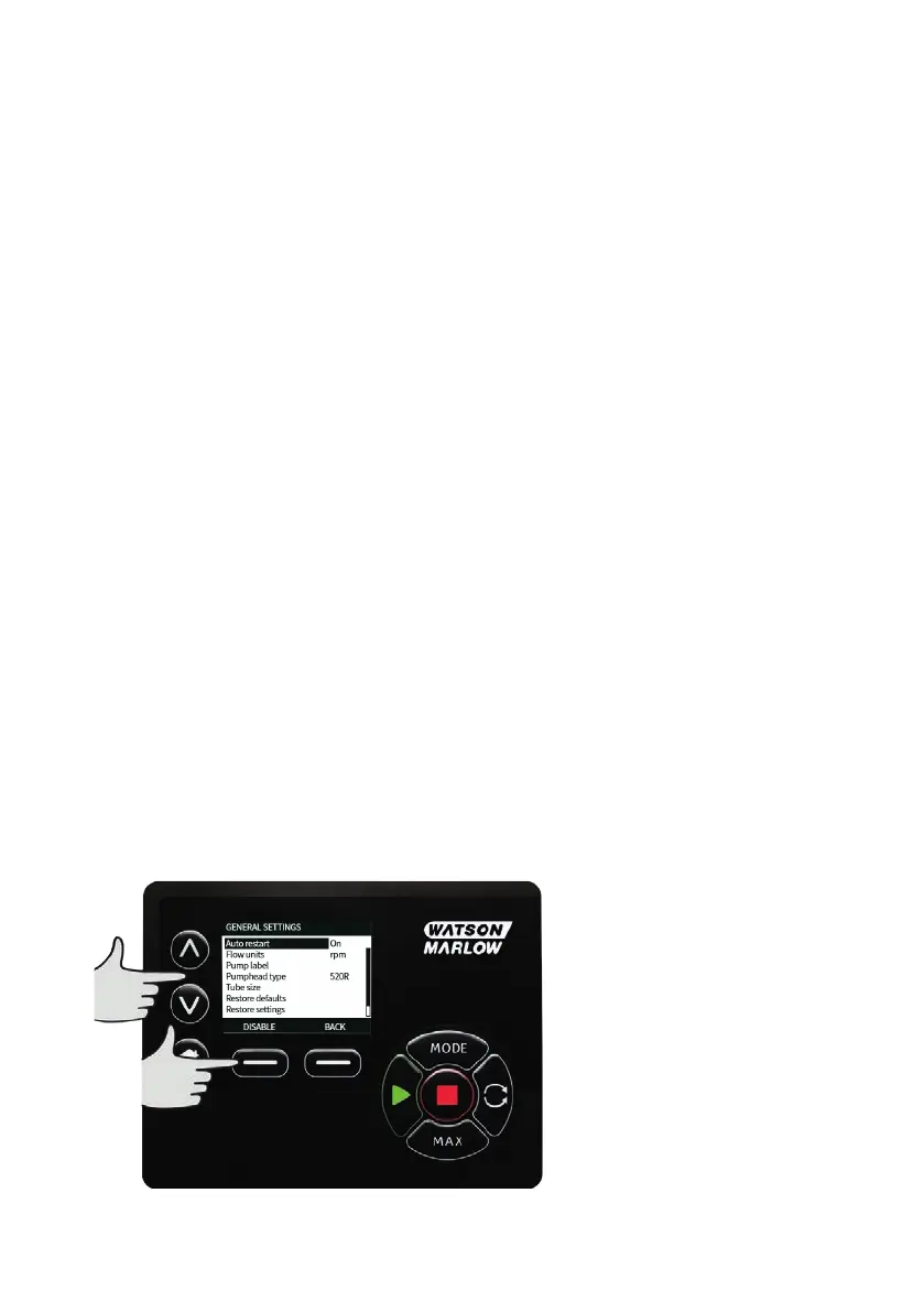 Press ENABLE/DISABLE to turn the auto restart feature on/off (Manual mode, network mode and