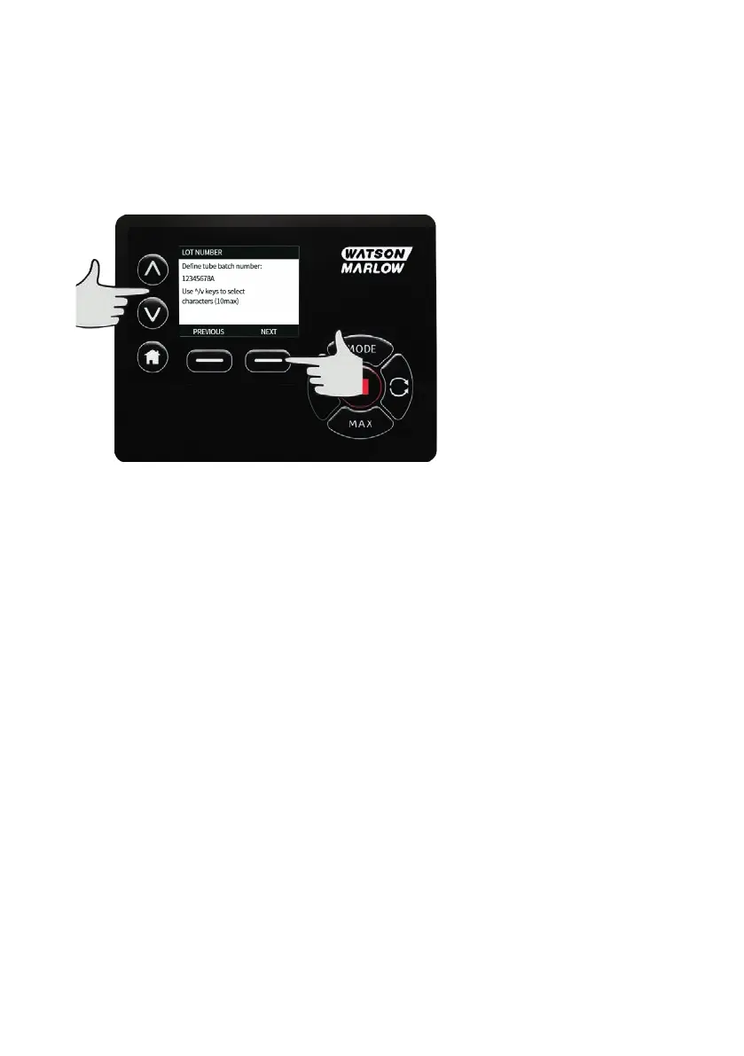 ∧ /∨ keys to move the selection bar over Tube lot number and press SELECT.