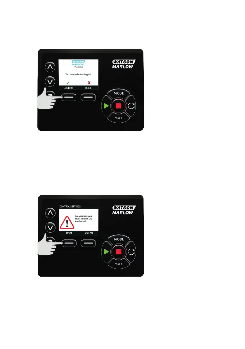 Your selected language will now be displayed on screen. Press CONFIRM to continue, all displayed text