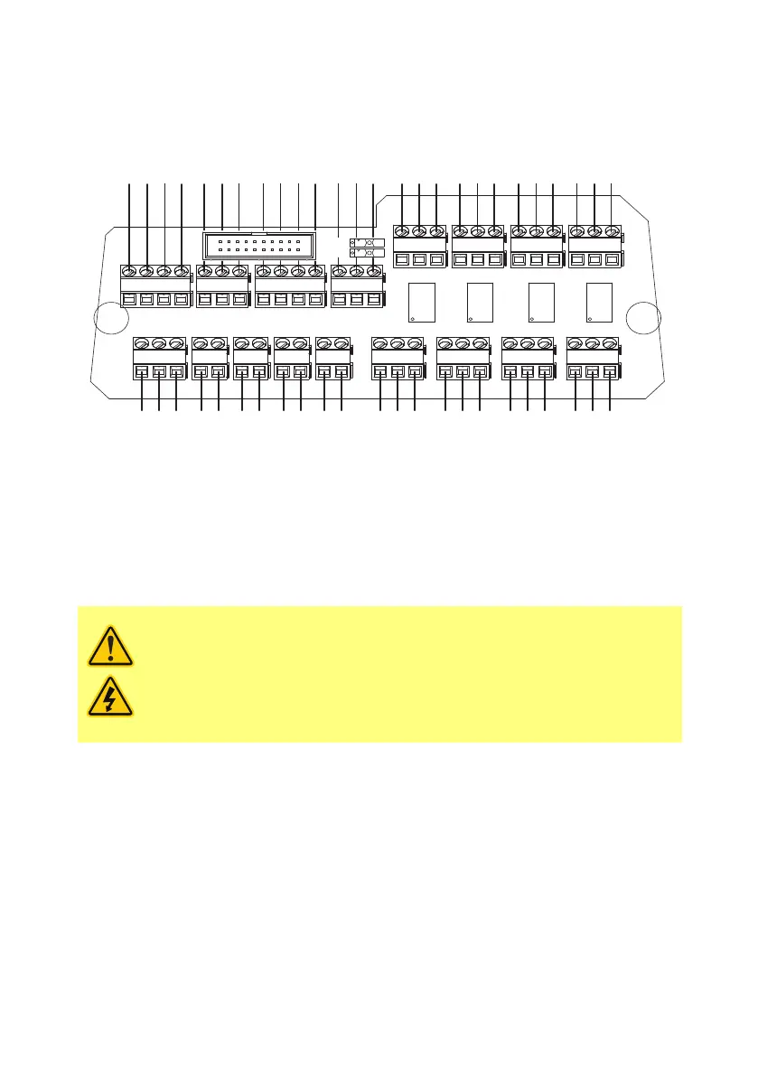 Never apply mains power to the terminals within the N module. Apply the